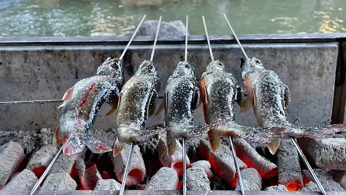 自分で釣ったあまごや、いわなを、その場で焼いて食べる事が出来ます。